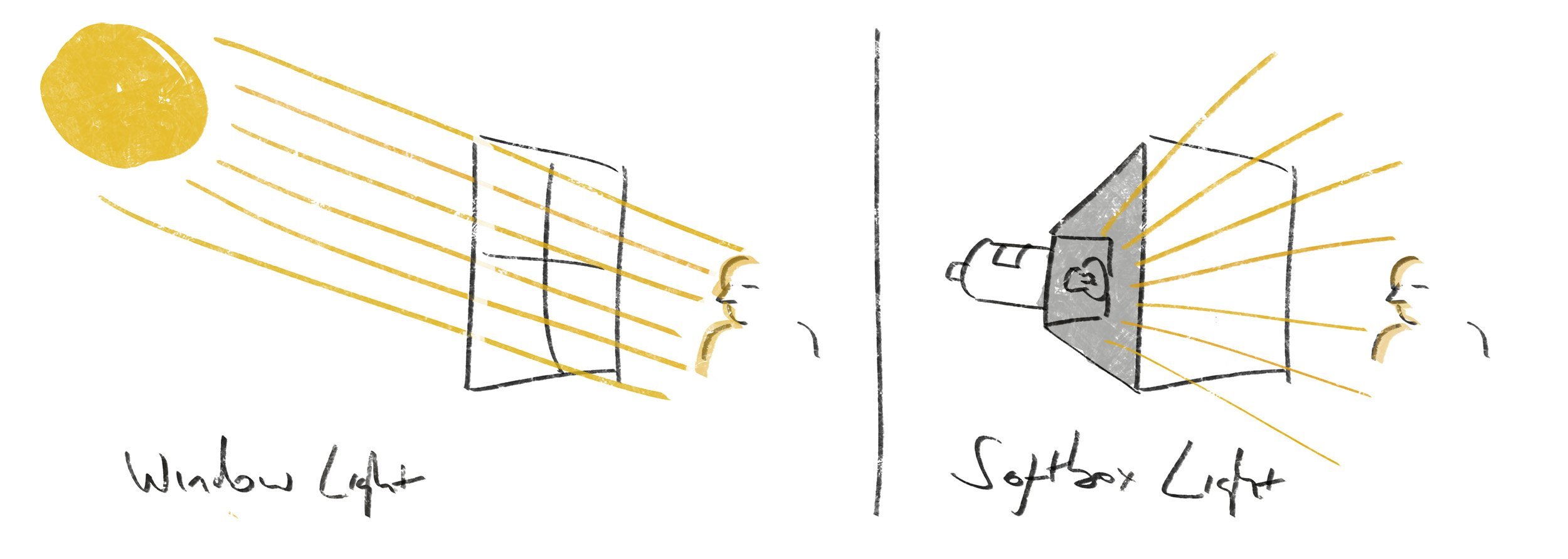 Softboxes were originally designed to emulate window light. Yes, they often come in the same shape and size as a window, but that is where the similarities end and I defy anyone to show me a window that produces light like a softbox does. The reason for this is simply due to how the light actually arrives at the subject. One light is emanating from millions of miles away and the other is originating from a source mere inches away. It’s this very important factor that can dramatically change how light ultimately looks on its subject and unless we take steps to address this final look, we may simply be ‘making do’ with illuminating our subject rather than actually properly lighting them.